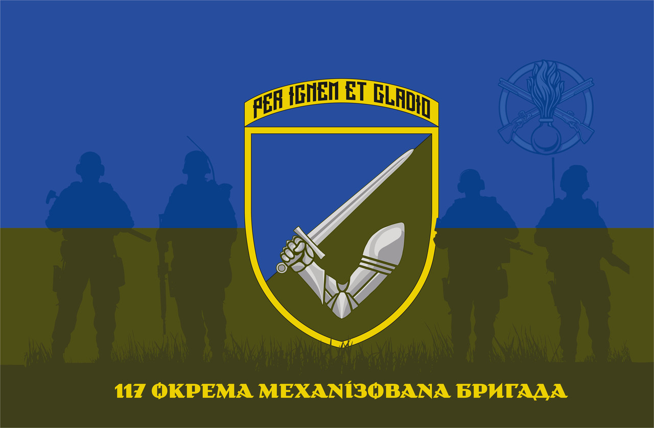 Прапор «117-та Окрема механізована бригада», Штучний шовк, 1200х700 мм